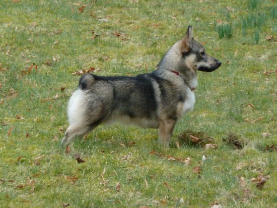 This little chap, our Swedish Vallhund came to the UK from the Tridents kennel in Sweden. He finished his six month spell in quarantine and joined the family in early February 2011. He is such a happy, layed back little chap nothing appears to bother him. Mikke enjoys having the girls to play with and is always trying to heard them together. One thing that he's very good at is being an escape artist!